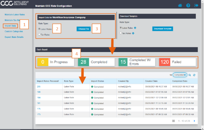 - Select either Labor Rates or Tax Rates under Rate Type.
